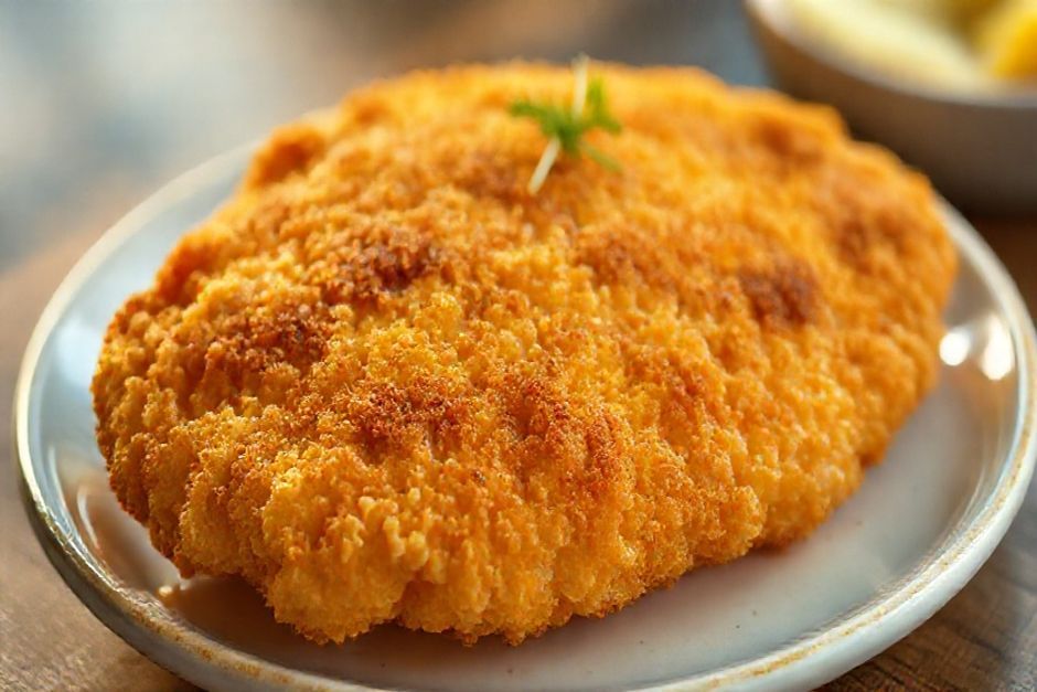 filé de frango empanado: crocante e sem fritura